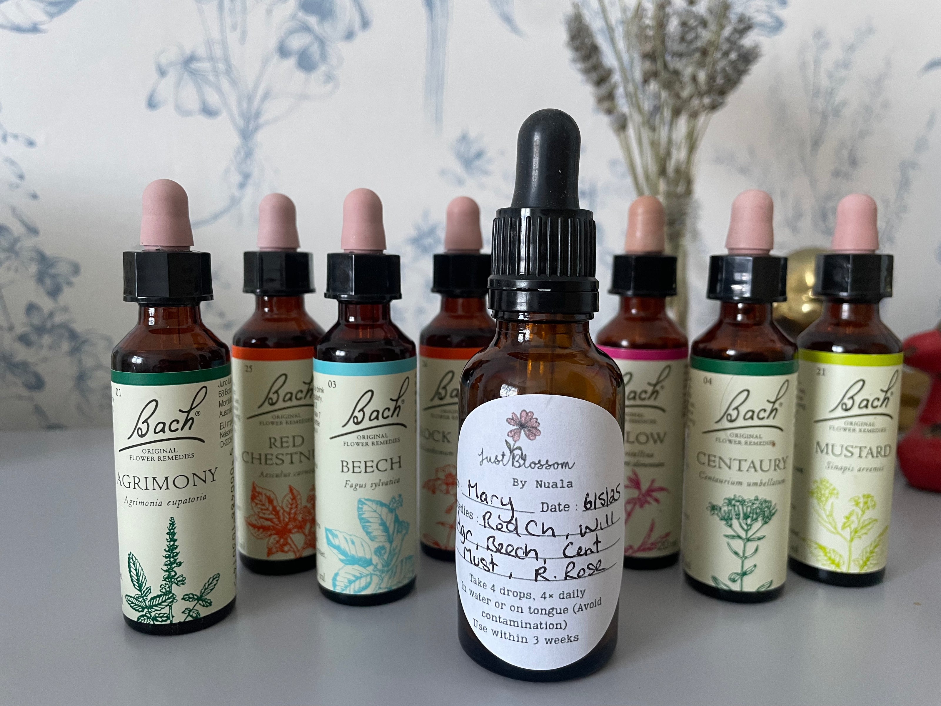 Each order comes as a 30ml dropper bottle, prepared by hand with your chosen blend of Bach flower remedies. Every blend is unique, created especially for you or your loved one, to gently balance emotions.